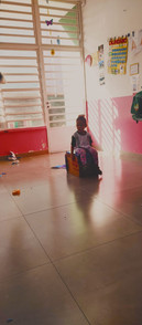 A aula da Professora Andreza, por exemplo, foi com bambolês, onde brincar com circuitos proporcionou o desenvolvimento de habilidades como agilidade, coordenação motora, noção de lateralidade, conceitos de dentro/fora, embaixo/em cima, agachado/em pé e reconhecimento de cores.
