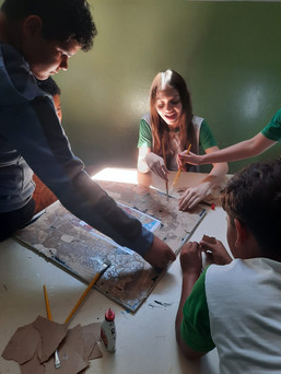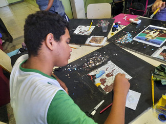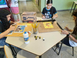 O professor Tiago Giacomini e seus alunos do Fundamental II desenvolveram para a 2° Exposição do projeto:MOSARTE durante o ano letivo de 2025, releituras inspiradas nas obras do artista brasileiro Cândido Portinari, utilizando a técnica de mosaico com papéis recicláveis.