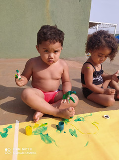 Através de brincadeiras com tinta guache, a professora Rosana Pereira, desenvolveu com seus alunos do Maternal I A, atividade lúdicas e criativas, capazes de estimular a comunicação, a sensibilidade, aumentar a capacidade de concentração e expressão das crianças, habilidades e competências importantes para seu crescimento.