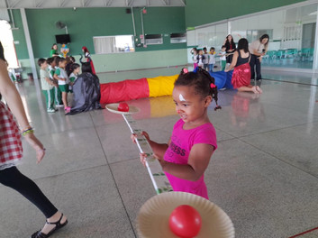 As crianças foram recepcionadas em um ambiente mágico, ao som de músicas circenses, pelas alunas da Escola Joaquim Mendonça. A transdiciplinaridade fez parte do projeto da professora Larissa Leme, que, por meio das aulas de Projeto de Convivência e Cidadania, trabalhou o desenvolvimento das habilidades socioemocionais das estudantes.