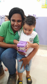 Com o auxílio das professoras e monitoras, as crianças expressam sua gratidão através da expressão de imagem.