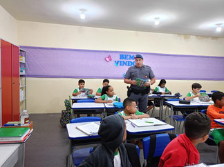 Nessa semana os alunos do 5º ano do Ensino Fundamental da Escola Municipal “Professor Osvaldo Alves Ferreira” iniciaram o Programa Educacional de Resistência às Drogas e à Violência – PROERD, um esforço cooperativo entre a Polícia Militar, a Escola e a Família.