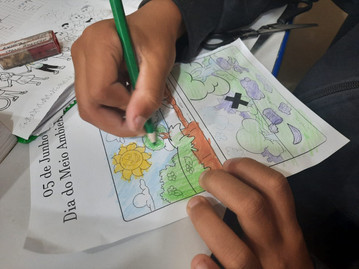 Para complementar, os alunos usaram a criatividade para colorir e criar frase motivacional sobre O DIA 05 DE JUNHO DIA MUNDO DO MEIO AMBIENTE, a aula pode assim mostrar grandes talentos da escola com lindas pinturas e criatividade com suas frases.
